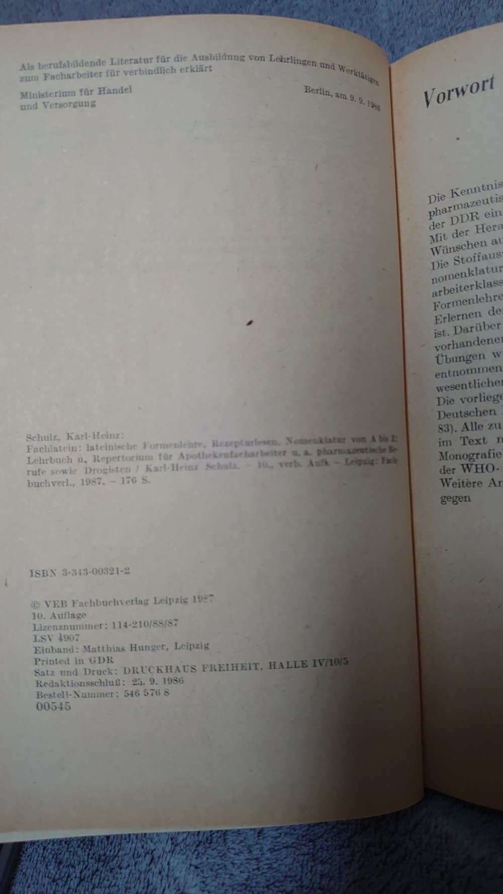 Fachlatein Karl - Heinz Schulz Lateinische Formenlehre Rezepturlesen Nomenklatur von A - Z Lehrbuch und Repertorium für Apothekenfacharbeiter und andere pharmazeutische Berufe sowie Drogisten 1987