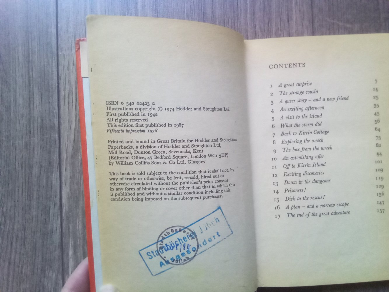 Enid Blyton Famous Five on a treasure Island gebunden Ehemaliges Büchereiexemplar auf ENGLISCH! 5€