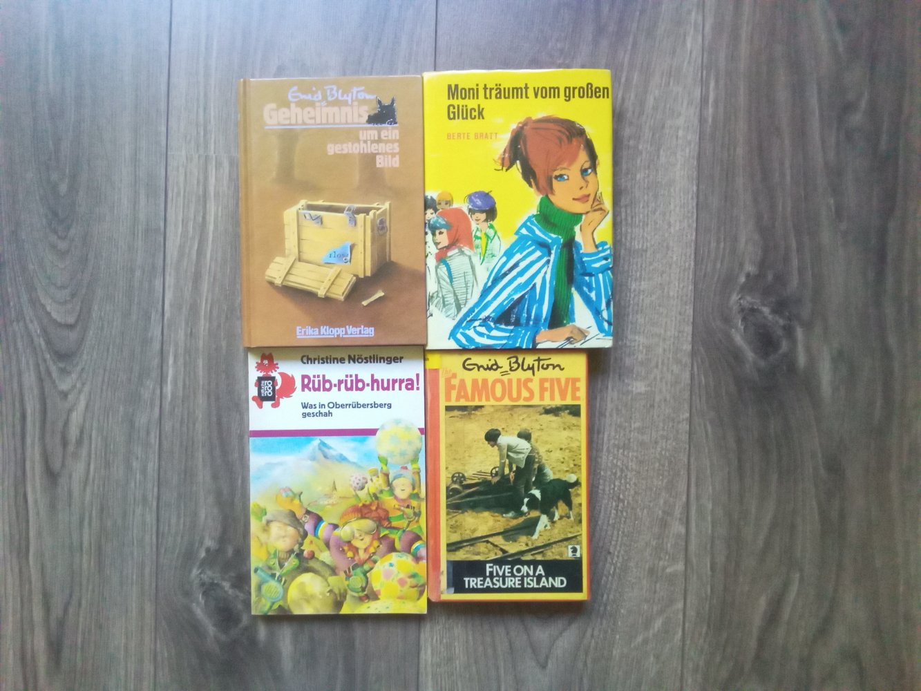4x Buch famous five on a treasur Island Moni träumt vom großen Glück Rüb-Rüb-Hurra! Geheimnis um ein gestohlenes Bild