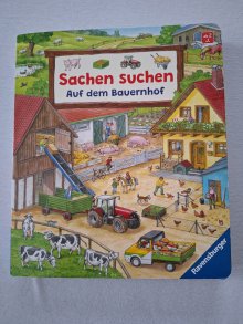 • Tolles Wimmelbuch "Sachen suchen - Auf dem Bauernhof" mit dicken Pappseiten für kleine Kinderhände. Ein Wimmelbuch-Suchspaß-Titel aus der beliebten „Sachen suchen“ Reihe. Auf dem Bauernhof gibt es immer viel zu tun: auf den Feldern die Äcker umgraben, Getreide und Gemüse ernten, Wiesen mäh...