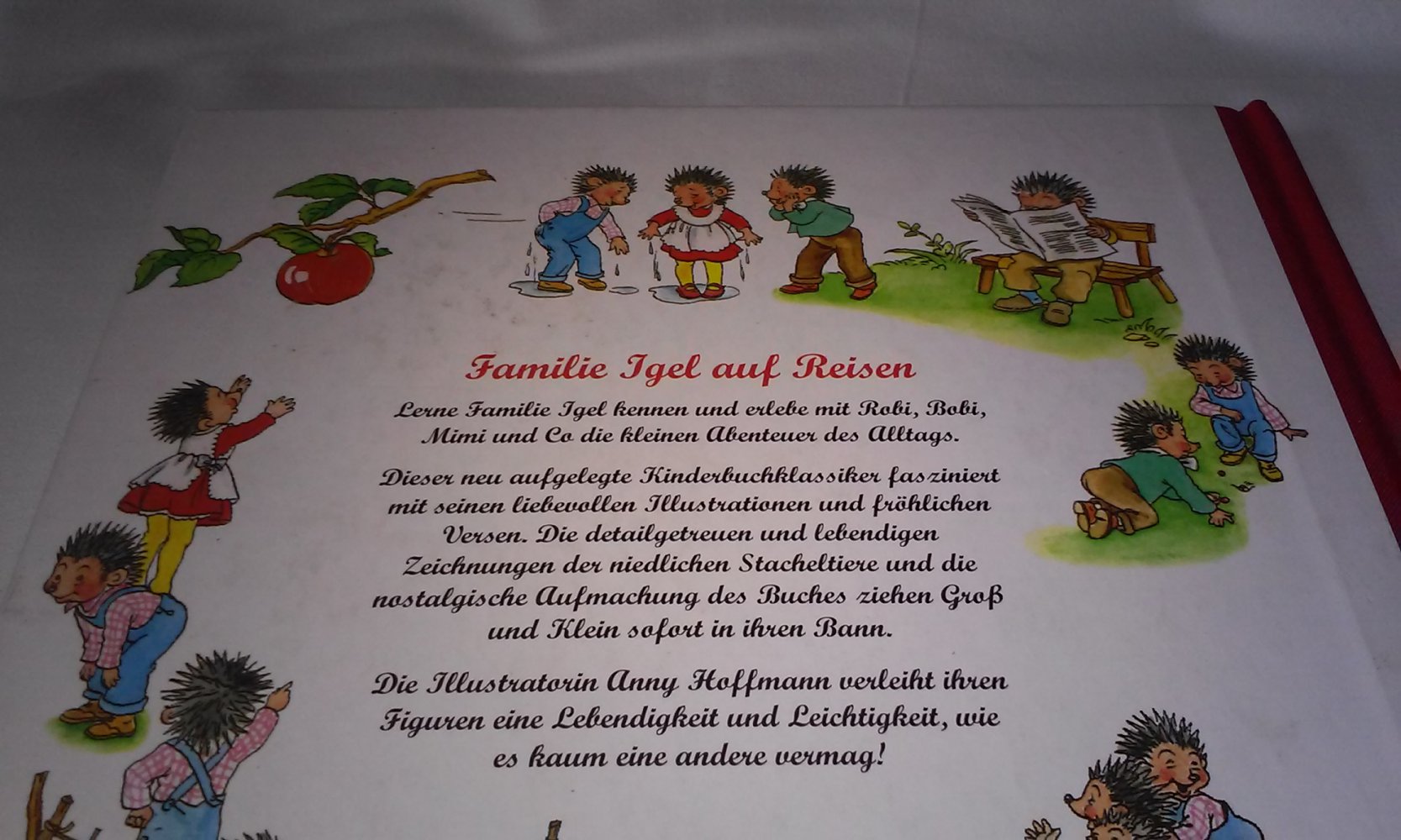 Familie Igel auf Reisen Lerne Familie Igel kennen und erlebe mit Robi, Bobi, Mimi und Co die kleinen Abenteuer des Alltags. Dieser neu aufgelegte Kinderbuchklassiker fasziniert mit seinen liebevollen Illustrationen und fröhlichen Versen. Die detailgetreuen und lebendigen Zeichnungen der niedlichen Stacheltiere und die nostalgische Aufmachung des Buches ziehen Groß und Klein sofort in ihren Bann. Die Illustratorin Anny Hoffmann verleiht ihren Figuren eine Lebendigkeit und Leichtigkeit, wie es kaum eine andere vermag! Dieser Band ist geeignet für Kinder ab 3 Jahren!
