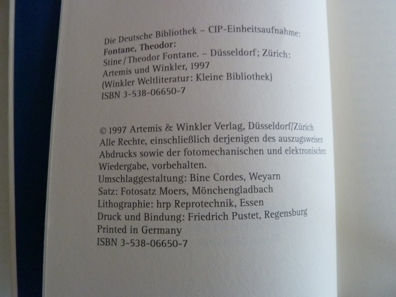 Theodor Fontane Stine gebunden Artemis & Winkler Verlag 1997 Theodor Fontane Stine gebunden Artemis & Winkler Verlag 1997 Theodor Fontane Stine gebunden Artemis & Winkler Verlag 1997 Theodor Fontane Stine gebunden Artemis & Winkler Verlag 1997