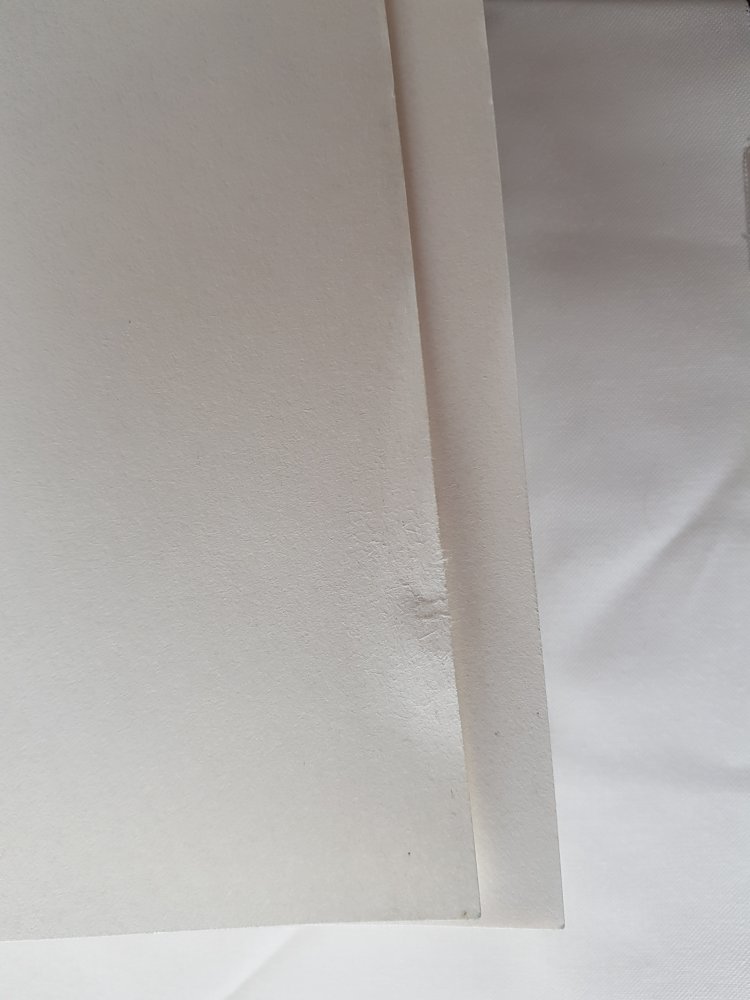 Es wurde nur einmal gelesen und hat normale Gebrauchsspuren an den Kanten. Auf dem ersten Blatt im Buch war ein Fleck, den ich versucht habe herauszubekommen. Ist mir zwar gelungen, aber das Papier hat etwas gelitten. Siehe letzte Bild.