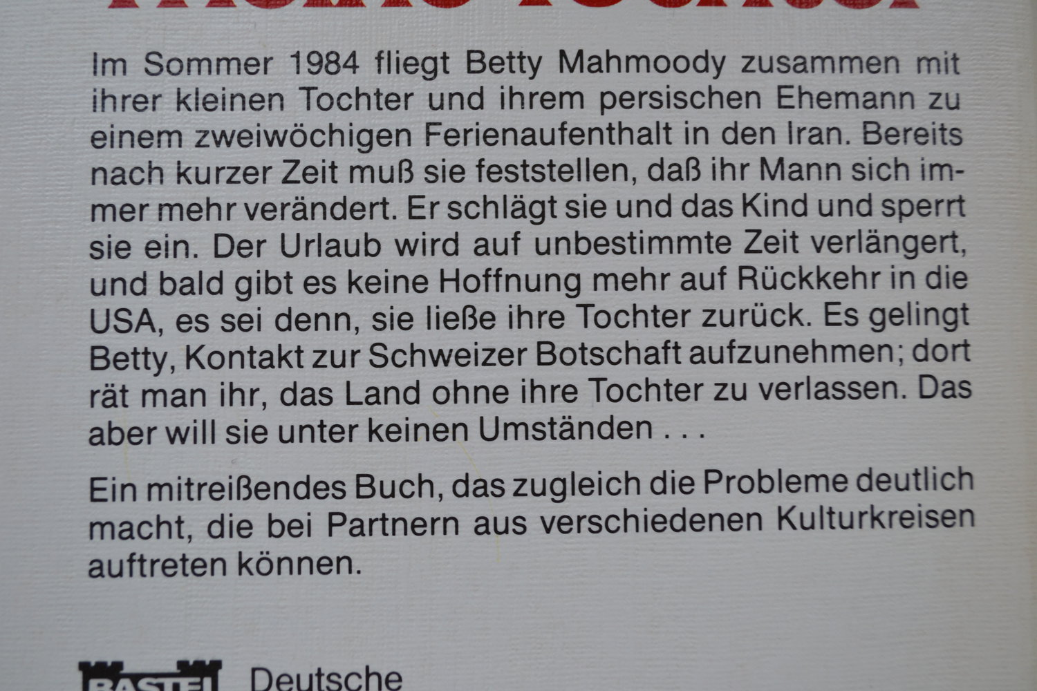• Fortsetzung von "Nicht ohne meine Tochter". In diesem Buch berichtet Betty, wie es ihr und ihrer Tochter nach der Flucht aus dem Iran ergangen ist. Sie setzte sich für verzweifelte Elternteile und Kinder mit gleichen Schicksalen ein, die wie sie und ihre Tochter Opfer unterschiedlicher Traditionen ...