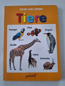 • Lehrreiches Kinderbuch (dicke Pappseiten) mit Photos von echten Tieren. Wurde bei uns gern angeschaut, daher leichte Gebrauchsspuren (siehe Bilder von den Ecken) vorhanden.