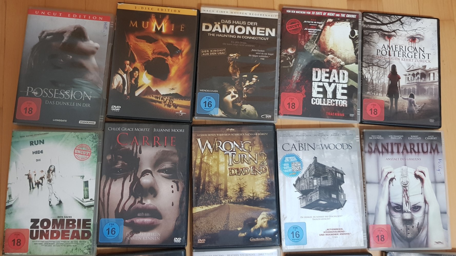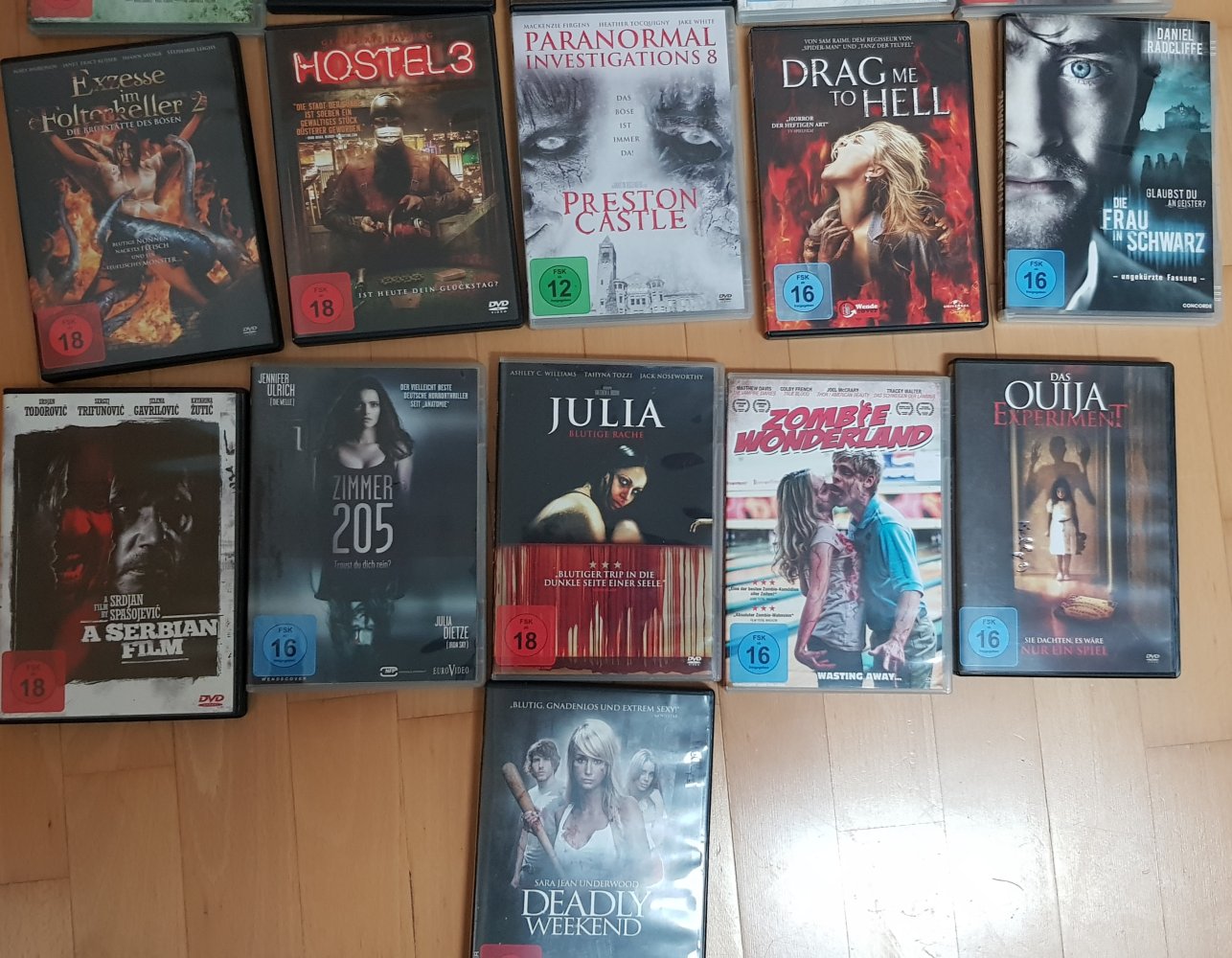 Verkaufe 105 verschiedene Dvd's alles möglich , hauptsächlich aber Horror & Thriller aber schau gerne alle 11 Foto's an :)
