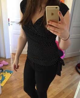 Pünktchen ,Schluppenbluse, rot weißen Punkten GR 40,Tru Blouse,Vintage, Hipster, Rockabella