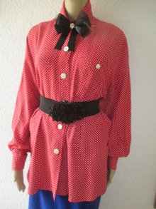 NEU * Original VINTAGE * Pinup * Punkte * Polka- Dots * Tupfen * Long * Hemd- Bluse "Betty Barclay" Gr. 38- 40/ S- M * Oversize * rot * weiss *