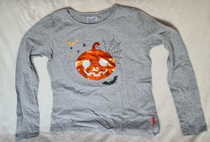 Grau-meliertes Longsleeve-Shirt von emoji mit Wende-Pailletten - Halloween