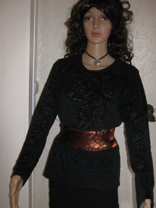 NEU Vintage Langarm Longsleeve Blüten Ausbrenner Samt T- Shirt "FRAPP" Gr. 38- 40, 42/ S- M schwarz * Gothic