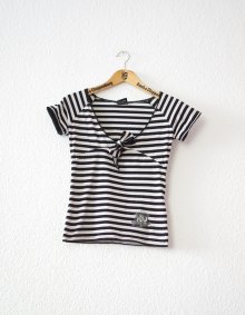 Schwarz-weiß gestreiftes King Kerosin Shirt Gr. S Rockabella zum Binden