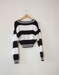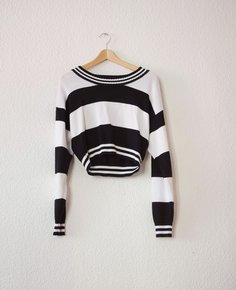 Schwarz weiß gestreifter cropped Strickpulli Gr. M 70er retro Nastygal