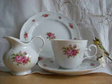 Kaffeekanne Moccakanne Singlekanne Porzellan Seltmann Weiden Nostalgie Theresia Blumendecor Band Blau