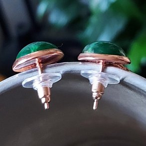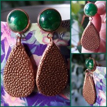 kupferfarbene Ohrhänger aus Rochenleder mit einem grünen Cabochon, Unikat, Galuchat, Perlrochen Ohrringe