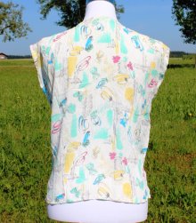 weißes True Vintage Top mit Sonnenhüten, Schleifen und Blumen, Größe 36-40, Unikat
