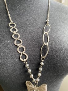 Kette, Modeschmuck, silberfarben, Schleifenelement