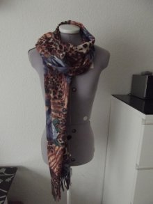 Schal braun dblau Muster Fransen edel