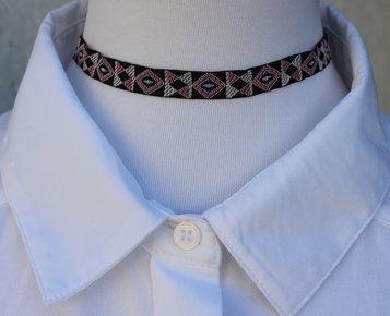 neue schwarz weiß rosa blaue Choker Halskette, Borte, Tribal Muster