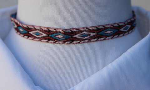 blau rot weiß schwarze Choker Halskette, Borte, Tribal Muster