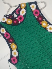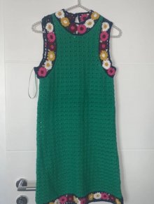Schwarz-grünes, neues Häkelkleid, Gr.XS, Unikat
