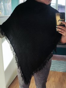 Schwarzer Poncho mit Fransen