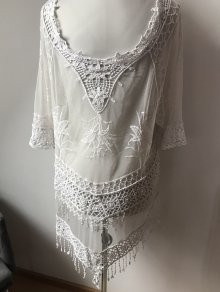 Hunkemöller, Strandtunika, weiß, Häkellook, mit Fransen, Gr. M