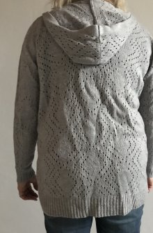 Strickjacke Kimono 44 grau Lochmuster Cardigan mit Kapuze