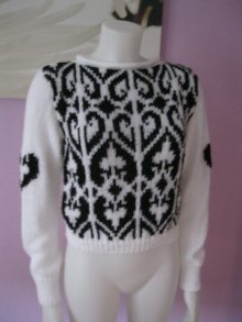 NEU Strickpullover mit Jacquardmuster Handmade schwarz/weiß S-L