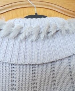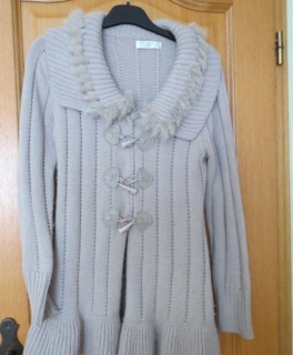 langer warmer kuscheliger Pullover mit Gürtel in beige Gr S