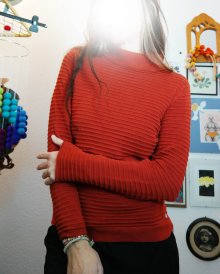 #Vintage - Shirt Langarm Rippen-Shirt, Polokragen mit RV, rot, ca. Gr. 38 bzw. ca. Gr. M