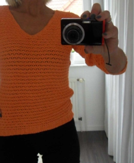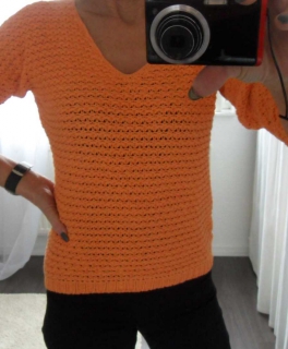 Interessanter Pullover mit spitz zulaufender Mitte und grauen Streifen ca. Gr. 38/40