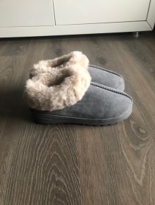 Graue Hausschuhe in Wildleder – Optik, Gr. 39