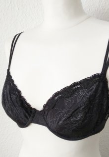 Esprit Bügel-BH in 75C, Grau / Schwarz, Softcups Baumwolle Spitze
