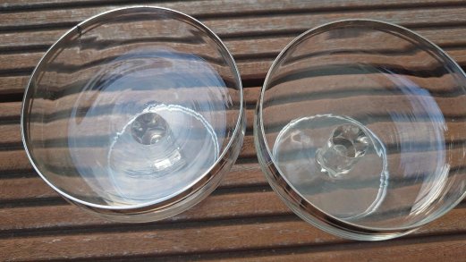 Glas Gläser Sektgläser Sektschale 2 Stück mit silbernen Rand Ingrid Gläser 70er / 80er Jahre original Vintage