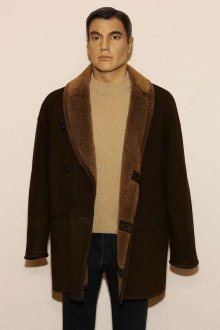 Wildledermantel mit Lammfell geschoren Größe 56 Armlänge 61 cm.