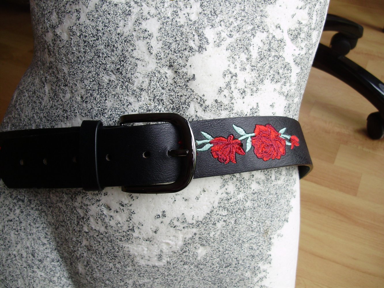 Gürtel schwarz Blüten rot Stickerei 100 cm NEU