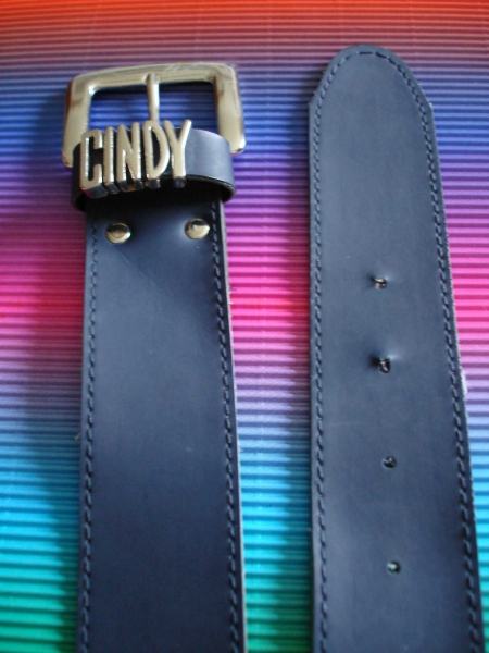 blauer Echtledergürtel mit goldener Schnalle