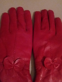 rote Handschuhe Damen Echtleder Lammfell gefüttert Fell Schleife Fahrrad retro Vintage