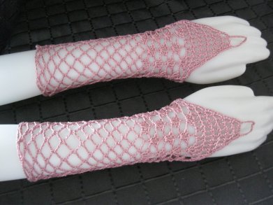 NEU Stulpen Handmade Handschuhe Mittelfinger-Schlaufe 100% Baumwolle Altrosa