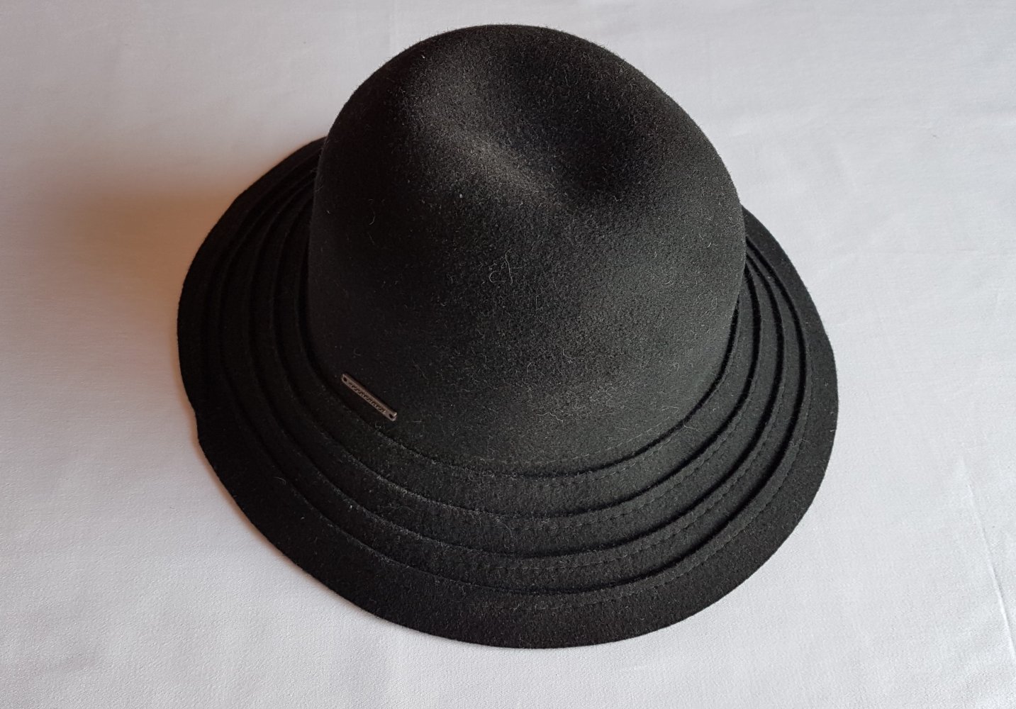 Hut der Marke Seeberger in schwarz, Krempe aus einander genähten Streifen.