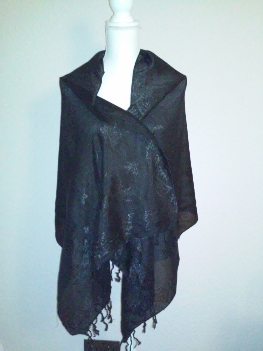 schwarz Fransen ca 67 x170 cm (obenauf leicht glanzgemustert) = 14€
