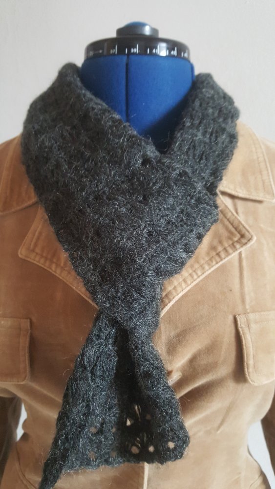 #schal #strick #unique #wolle #einzelstueck #anthrazit #handmade #makrameeoptik #kragenschal #unikat #schnaeppchen #ungetragen.