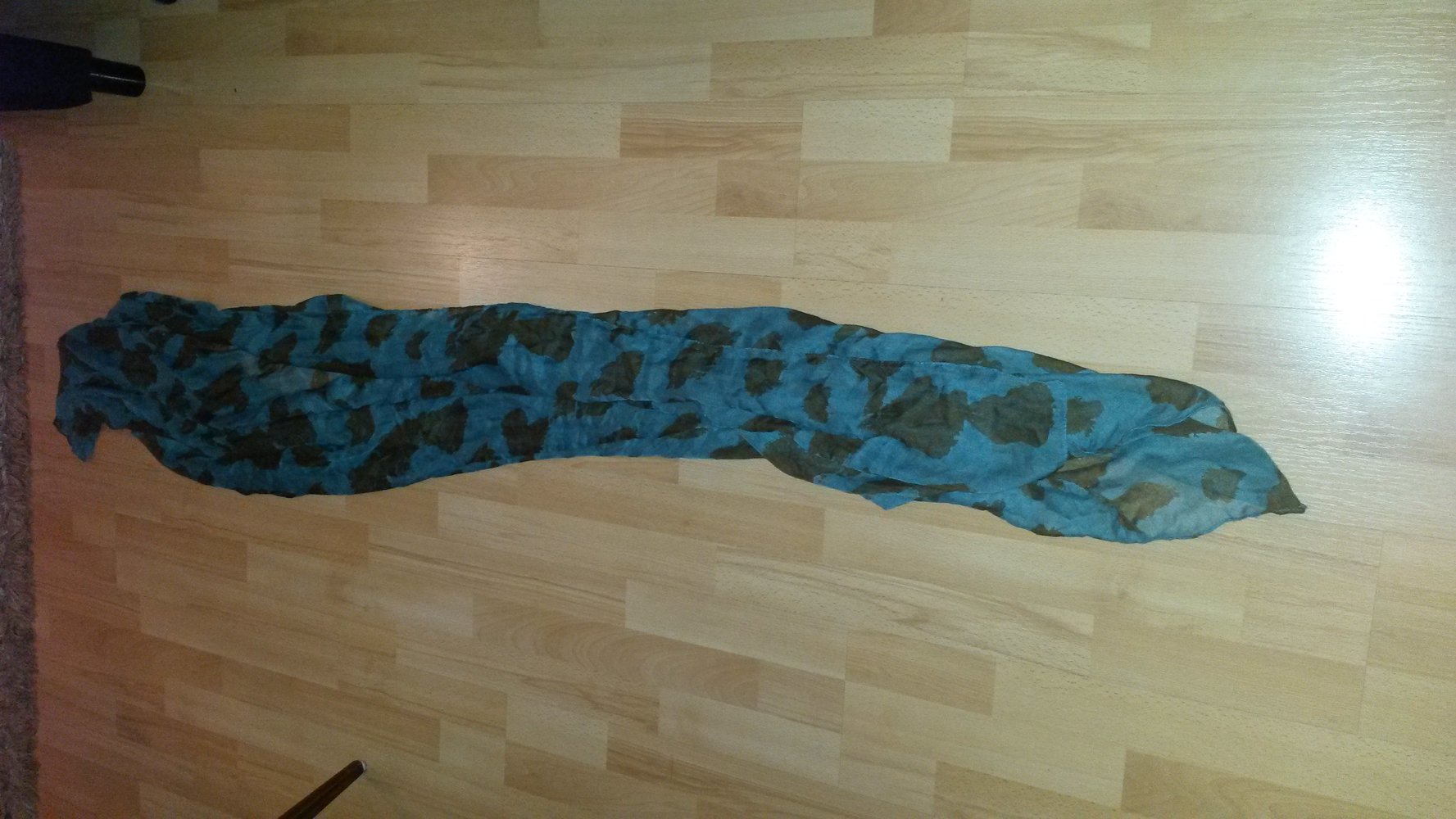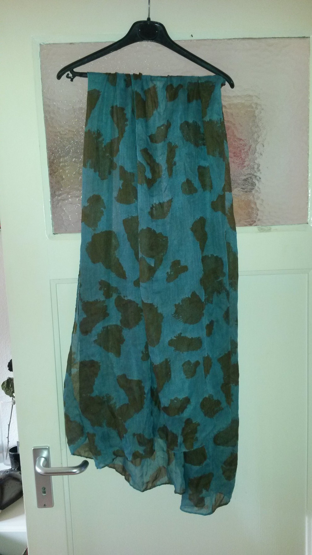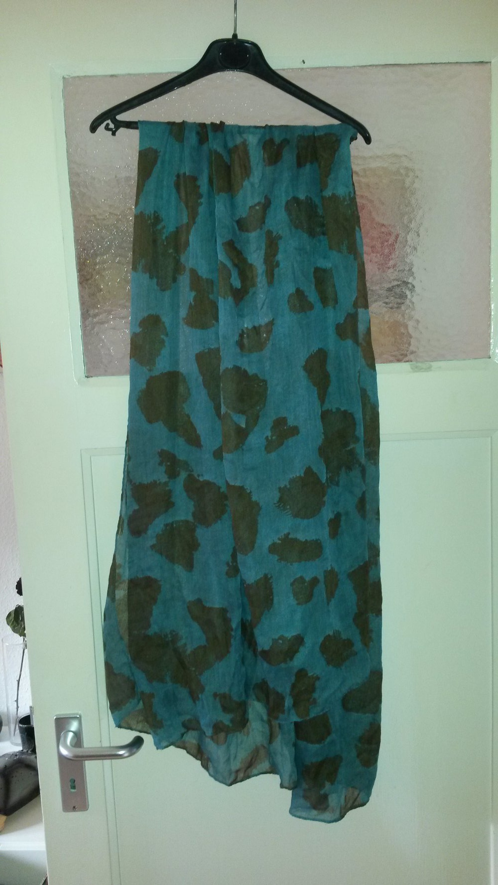 Biete hier ein großes/langes "Seiden" Halstuch in Blau/Türkis mit braunen "Flecken".