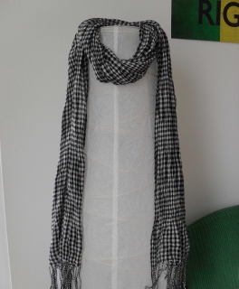 Schwarz-weiß karierter Crinkle Schal, angenehm weich.
