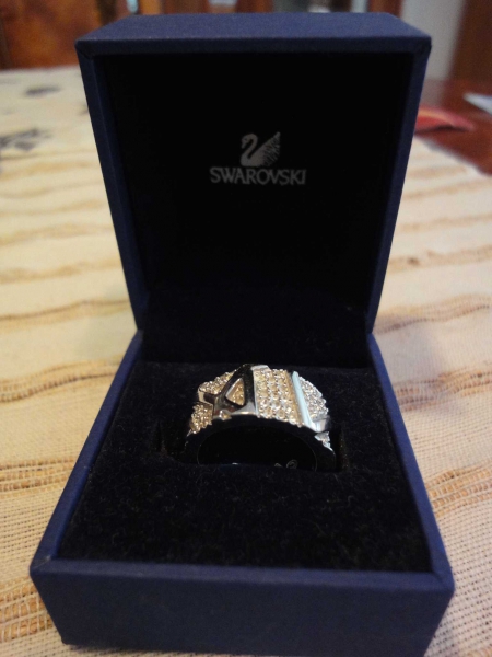Schöner Swarovski Ring mit üppig besetzten Swarovski Kristallen durchgängig um den Ring. Swarovski-Ringgröße 55 (= 17-17,35 mm Durchmesser innen).