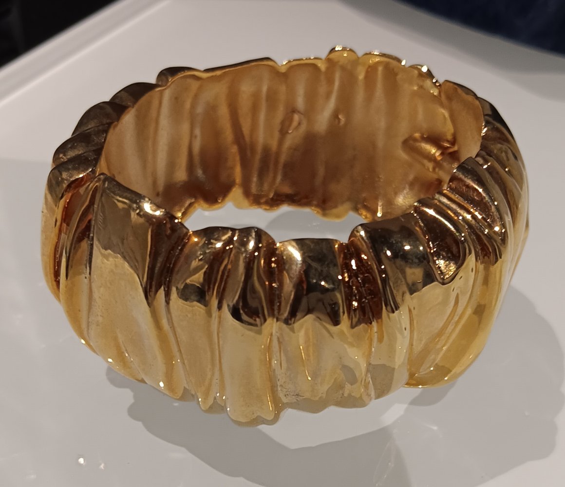 Wunderschöner, breiter Armreif, aufzuklären, leicht oval, Durchmesser ca. 7 cm, schönes schweres Material, Vintage ca. Anfang 1990er, läuft nicht an.