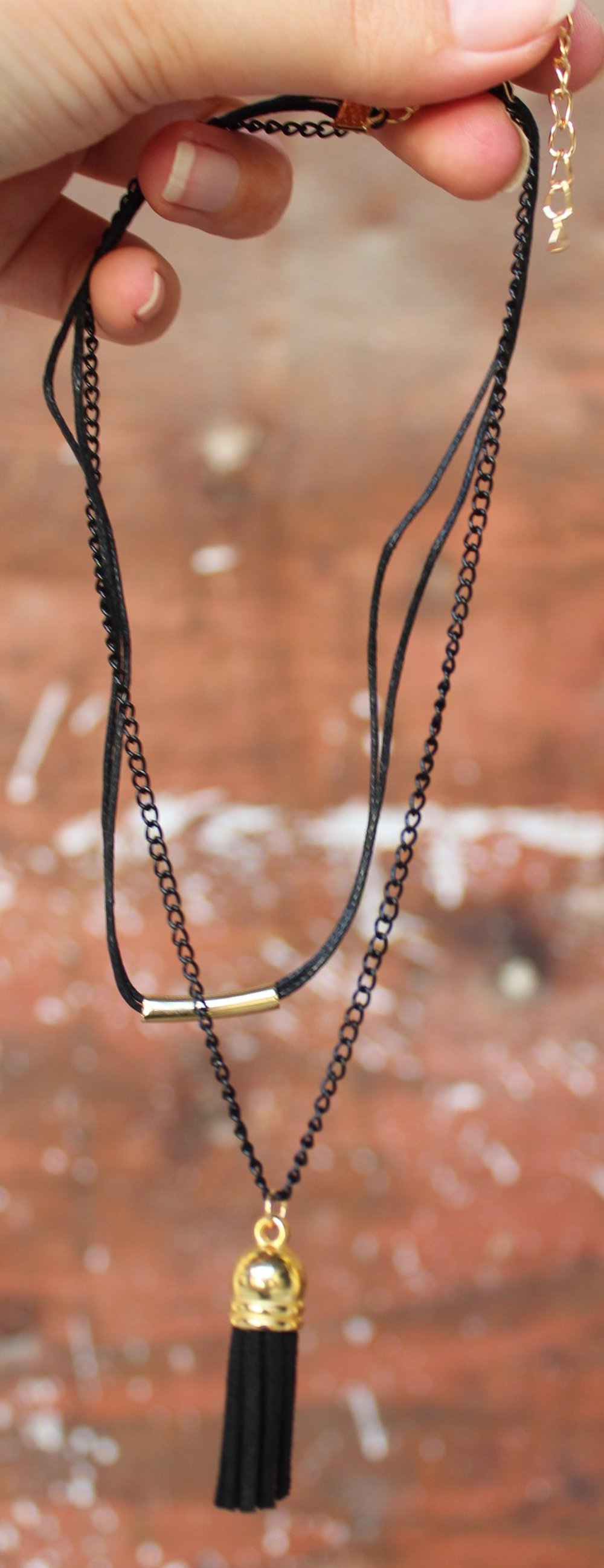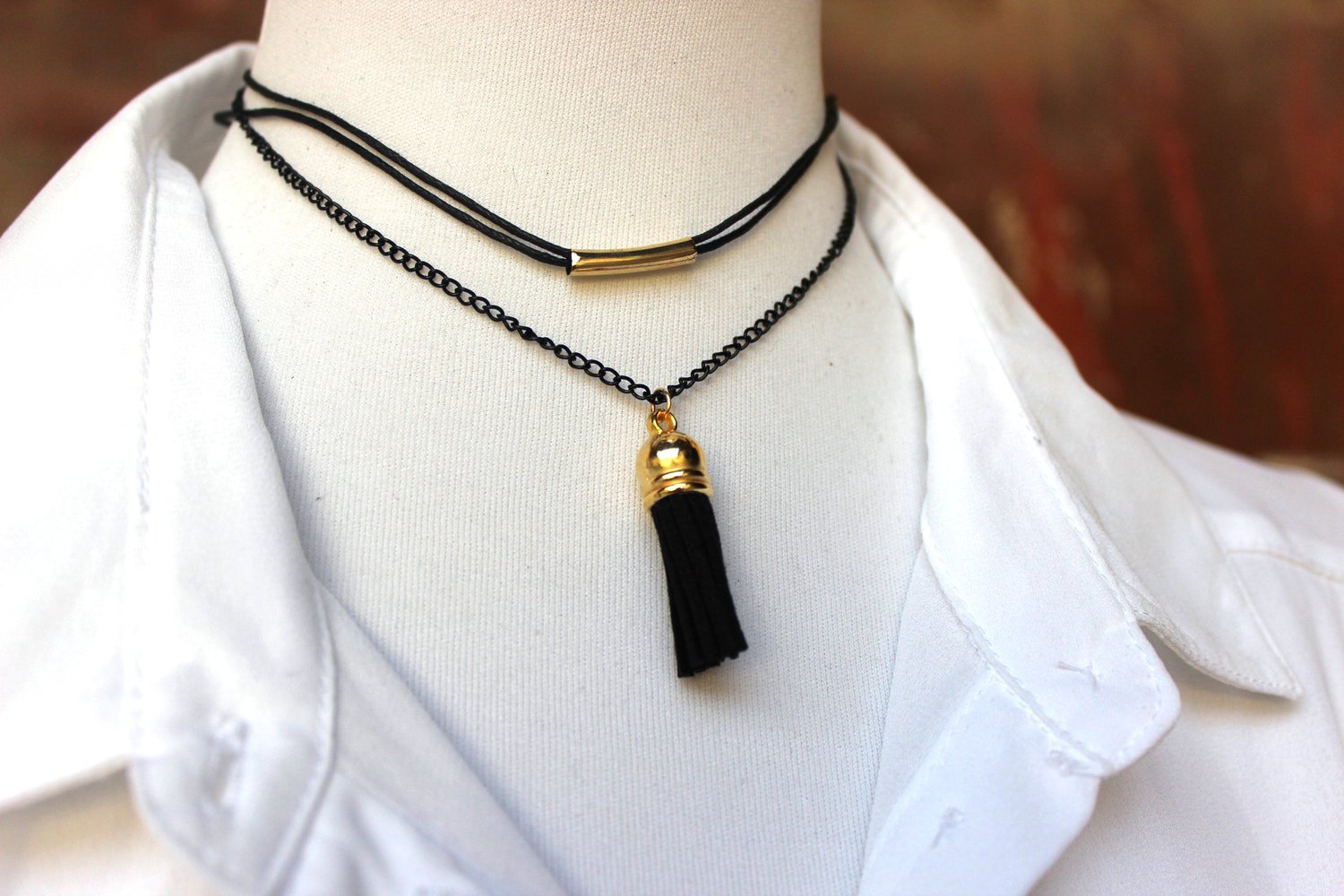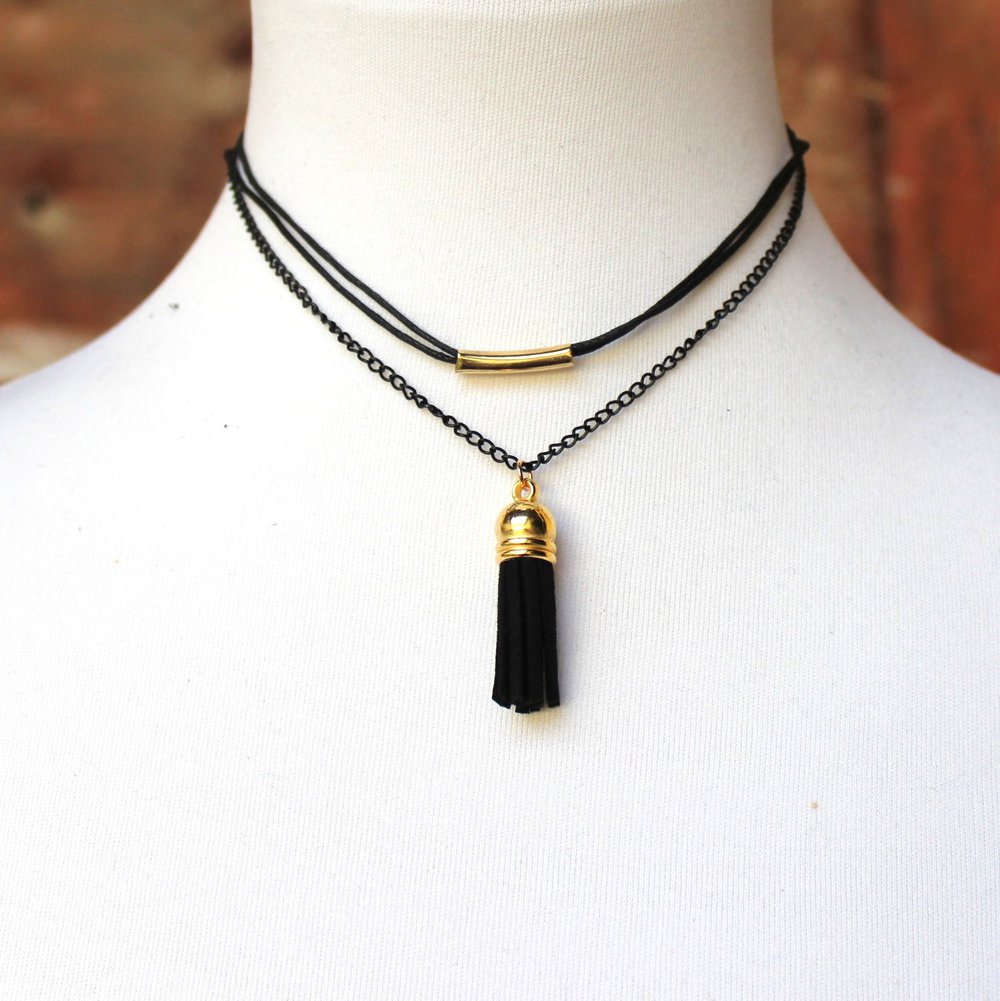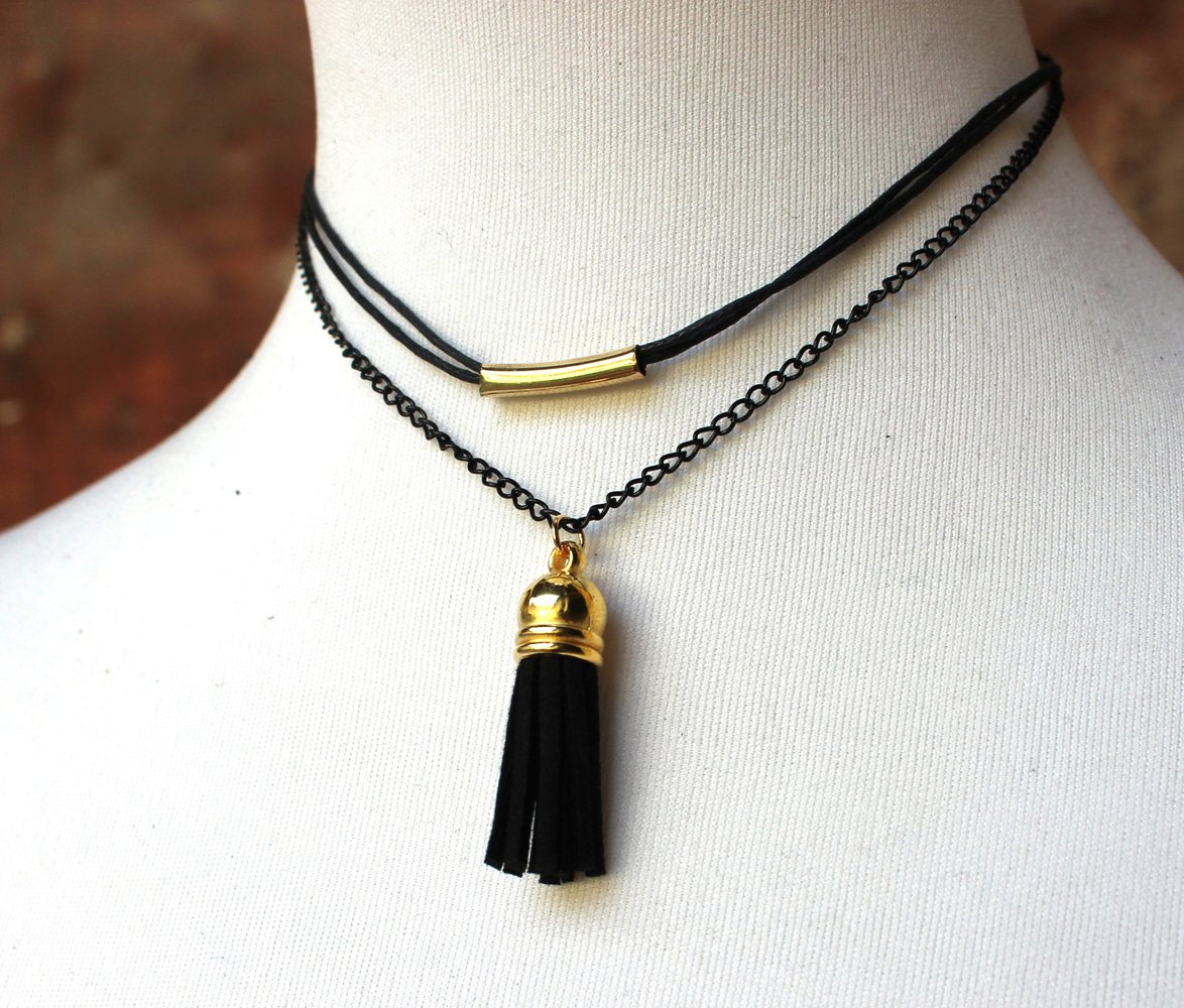 mehrreihige schwarz goldene Choker Halskette mit Bommel bzw. Quaste