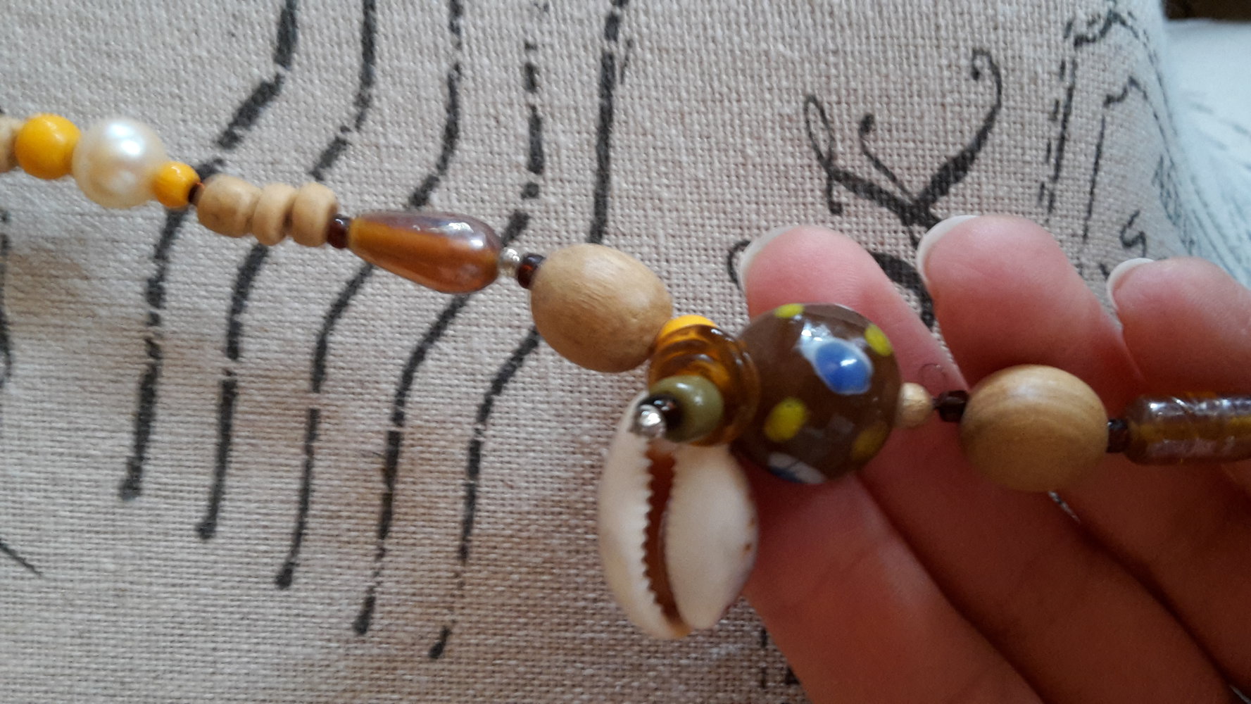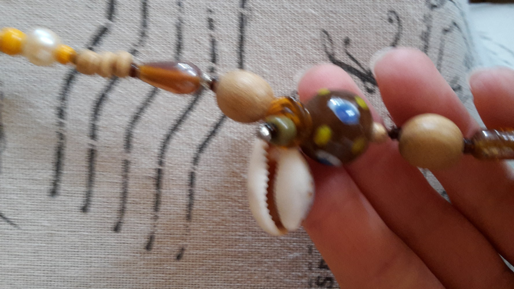 Mit Muscheln und Glasperlen. Guter Zustand.