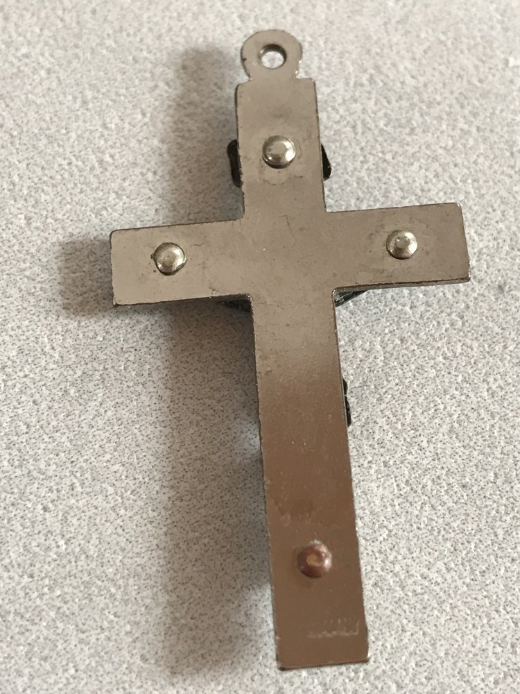 Es hat die Größe eines Rosenkranz Kreuzes und ist ohne Kette.