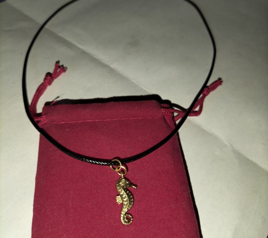 NEU Seepferdchen an edler Lederkette, Luxusvergoldung